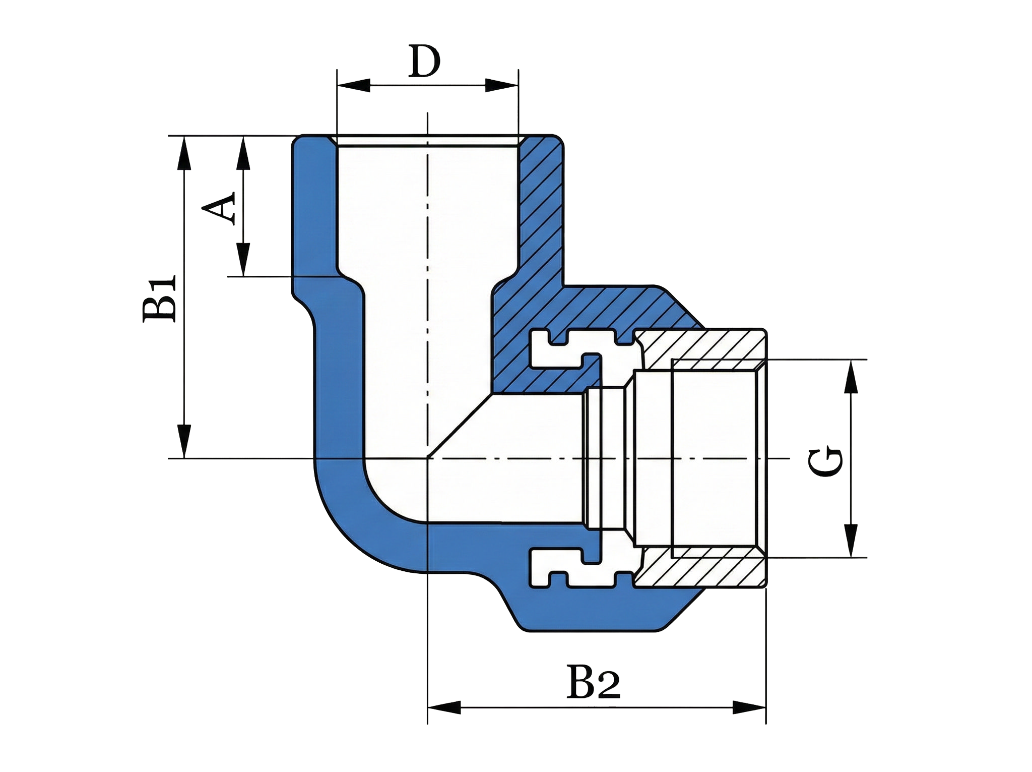 Adaptor Elbow 90° - Female (Fittings - combined fittings) - Combined fittings - 26.2020, 26.2020 B, 26.2025, 26.2520 , 26.2525, 26.2525 B, 26.3232 (fittings).